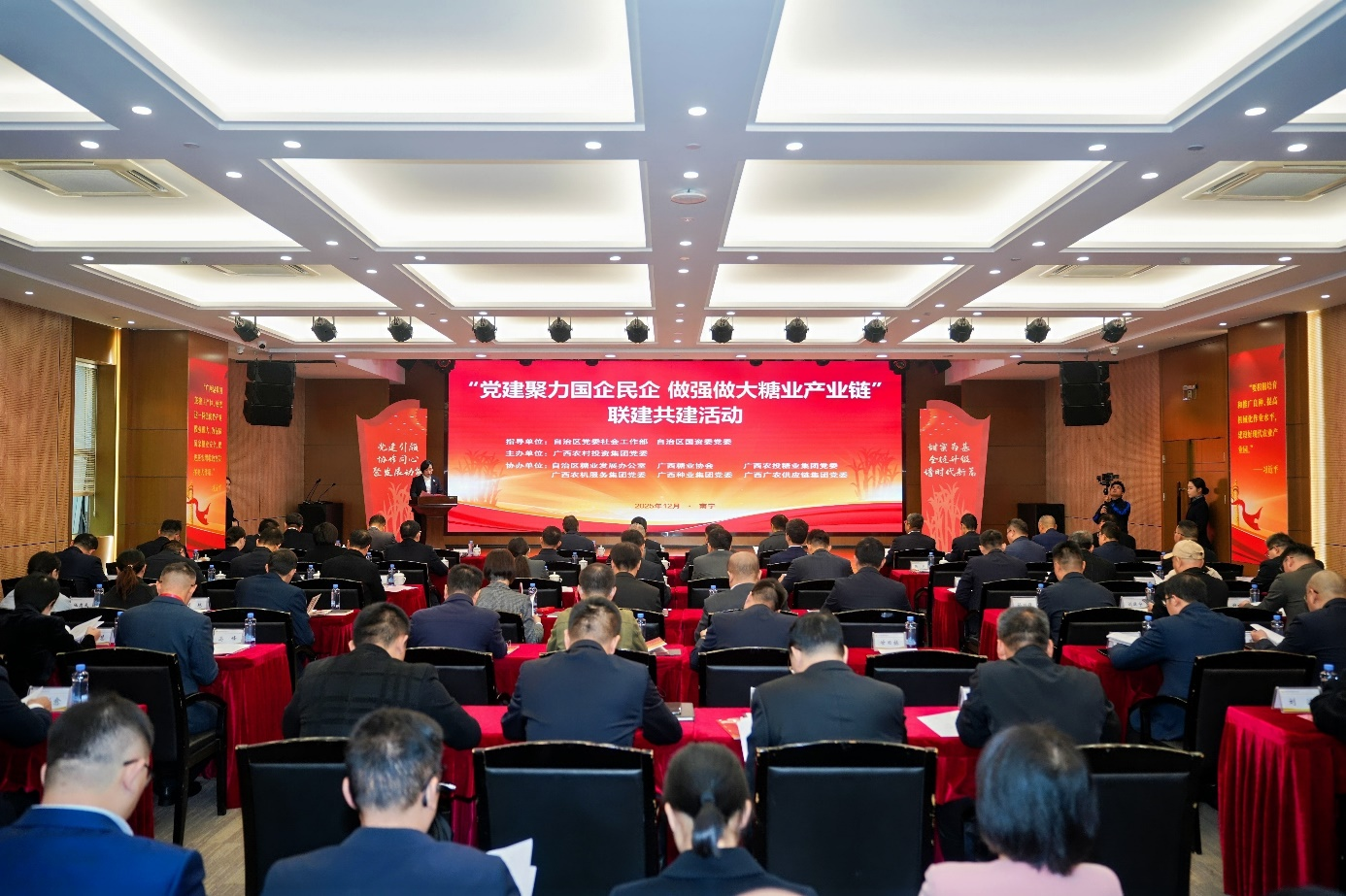 2025年12月16日上午,自治区党委社会工作部、自治区国资委党委联合举办的“党建聚力民企国企 做强做大糖业产业链”联建共建活动在南宁隆重举行。活动受到自治区党委、政府高度重视。自治区党委社会工作部部长、“两新”工委书记唐轶昂结合学习党的二十届四中全会精神在会上强调发挥党组织在糖业产业链上的政治引领与资源整合作用,推动国企、民企、高校、科研院所党组织联建共建、聚势赋能,着力破解产业发展难题,切实把党的组...