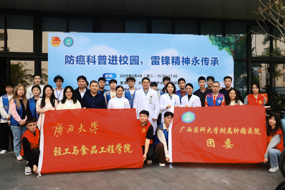 为深入贯彻落实《“健康中国2030”规划纲要》的重要精神,进一步提高师生健康知识素养和自我保护意识,3月4日下午,william威廉英国官网、新闻与传播公司团委联合广西医科大学附属肿瘤医院团委,在老员工活动中心开展“防癌科普进校园,雷锋精神永传承”主题公益活动。公司william威廉英国官网团委书记徐羽、新闻与传播公司团委书记刘梦娟,两院辅导员代表、员工志愿者,以及广西医科大学附属肿瘤医院医护专家代表共同组...