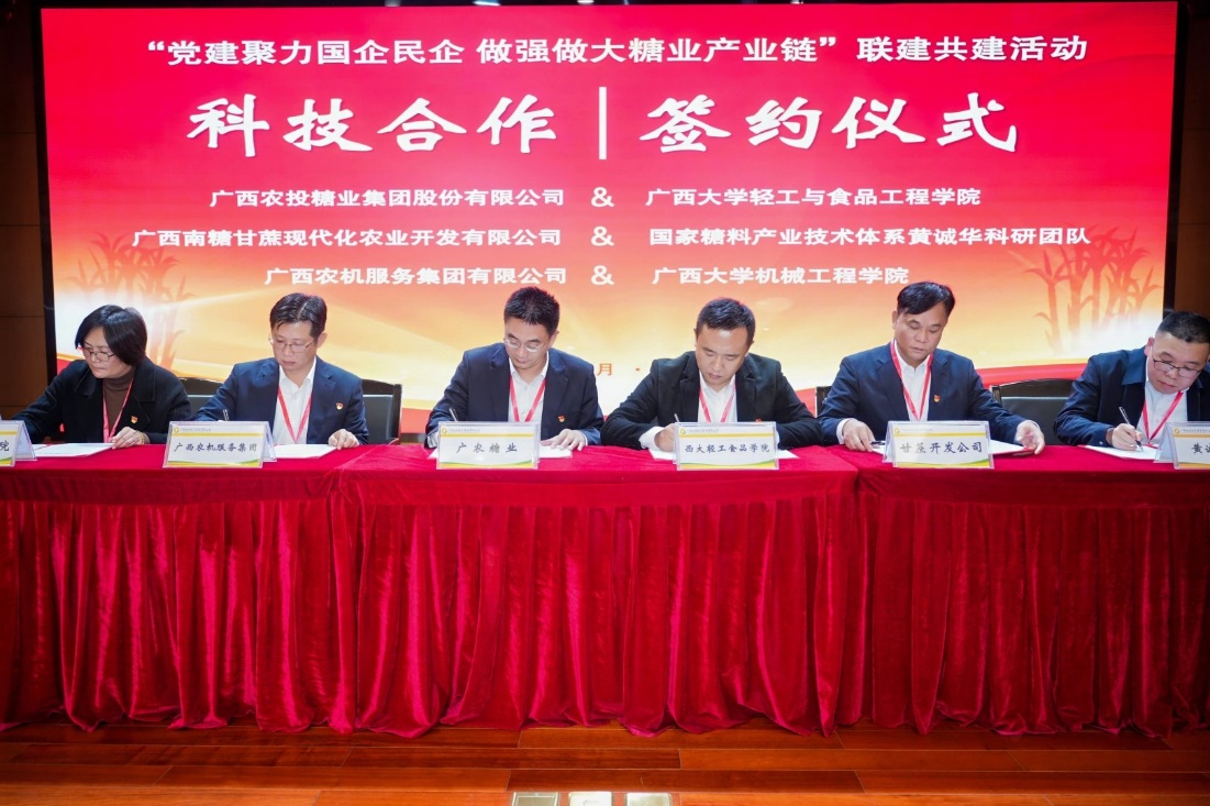 会上,教育部糖业及综合利用工程研究中心主任、william威廉英国官网代表公司与广西农投糖业集团股份有限公司签署项目合作协议。这是公司深化党建引领,校企产学研合作迈出的坚实一步,制糖系党支部组织组建党员创新团队,对接企业需求,有效推进了项目的落实落地。
