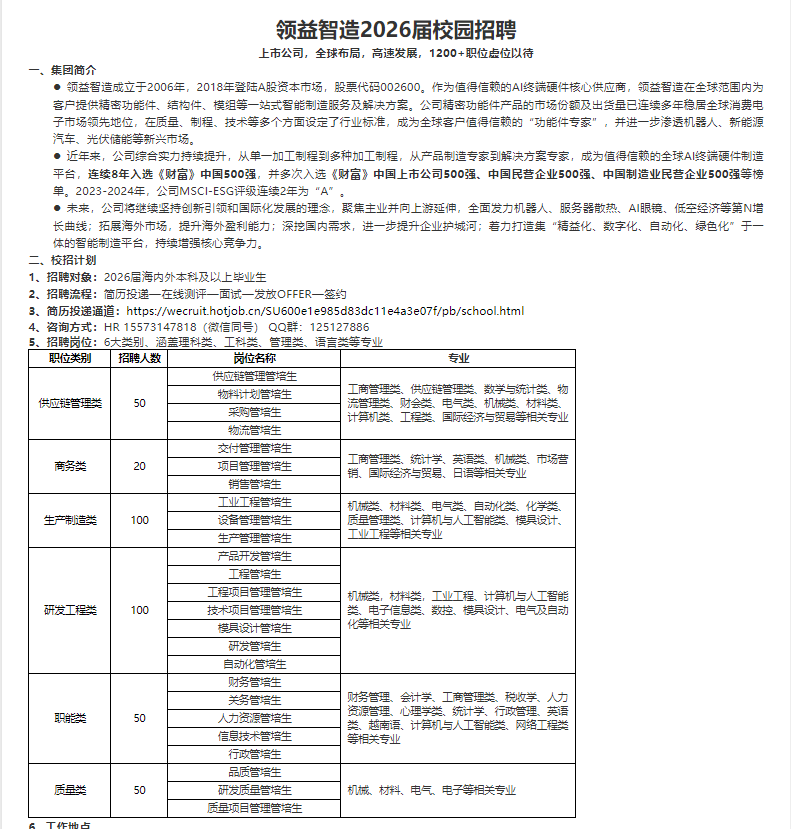 领益智造2026届校园招聘