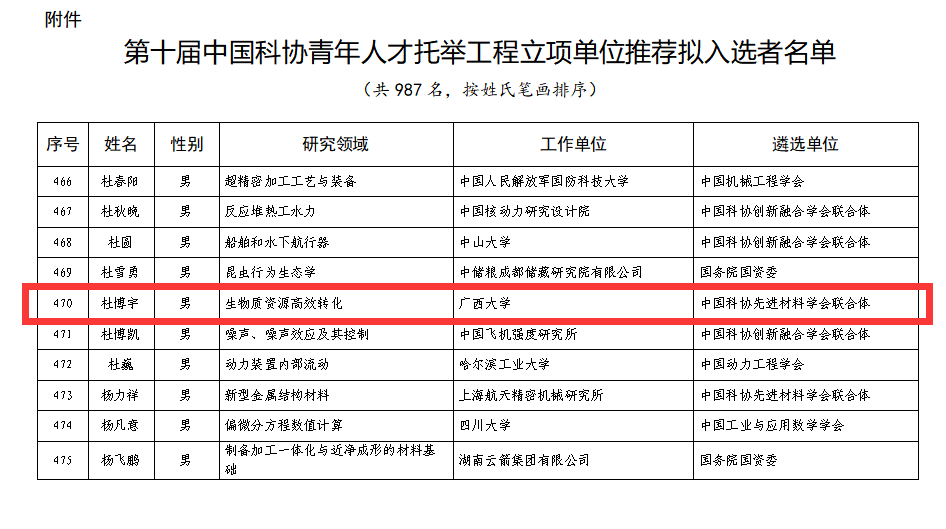 近日,中国科学技术协会第十届青年人才托举工程入选者名单公布,公司青年教师杜博宇经中国造纸学会资格审查、初评、答辩,中国科协先进材料学会联合体答辩评审等环节,成功入选。