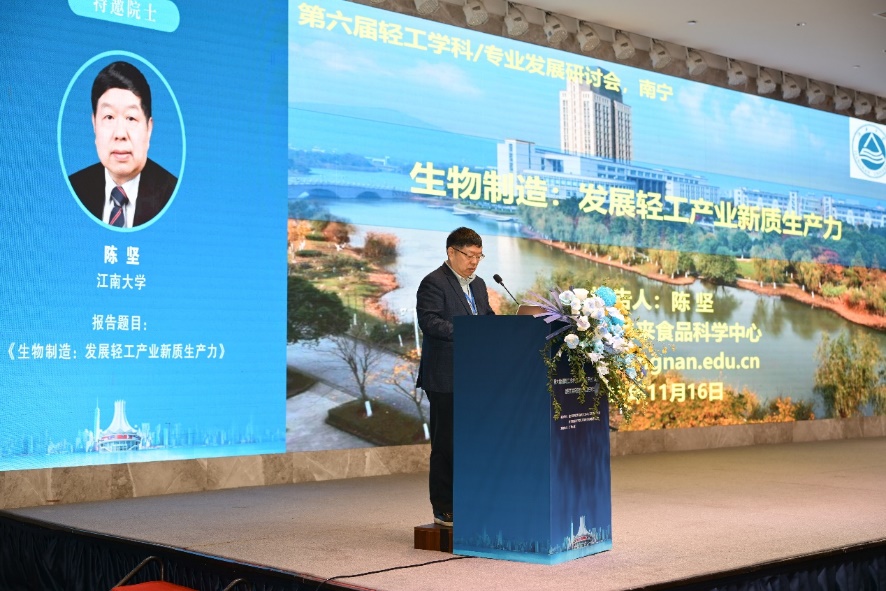 国务院学位委员会轻工技术与工程学科评议组召集人、教育部高等公司轻工类专业教学指导委员会副主任委员陈坚院士致辞