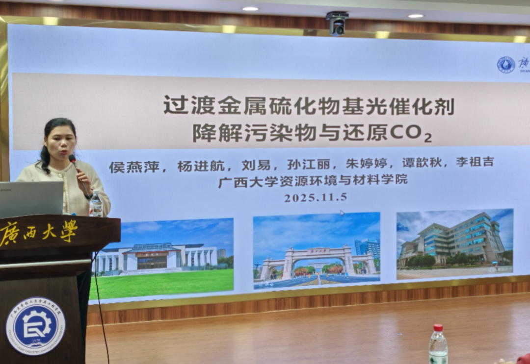 首先,侯燕萍教授从环保与能源领域的实际需求切入,介绍了污染物处理和CO₂还原的研究背景。她指出,过渡金属硫化物基光催化剂因光响应能力强、能带结构适配、结构与电子特性易调控,成为光催化领域的研究热点,可广泛应用于污染物去除、CO₂还原等方向。
