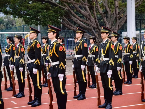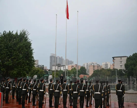 国旗仪仗队步伐铿锵、眼神坚定,护卫着五星红旗庄严入场。当《义勇军进行曲》激昂奏响,全体师生肃立高唱,格外嘹亮。五星红旗冉冉升起,如同信念在洗礼中愈加鲜明。