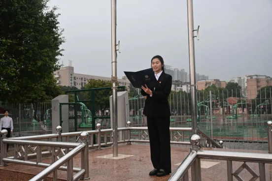 员工代表在国旗下发表新年感言。她谈到,雨水洗去尘埃,也象征着新时代青年不畏艰难、洗涤初心、砥砺前行的精神。她号召同学们在新的一年里继续肩负时代使命,以“雨打不灭热情,风吹不散信念”的坚定信念,在科学探索与社会服务的道路上持续耕耘。
