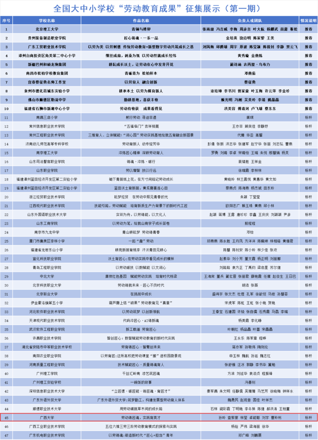 此次获评全国标杆作品,是对公司劳动教育工作的权威认可,更是公司深化“五育并举”育人改革的重要成果。下一步,公司将以此次获奖为契机,推动劳动教育与专业教学、社会实践、乡村振兴深度融合,着力培养更多兼具家国情怀与实干本领的时代新人,为广西高质量发展和国家战略实施注入西大力量。