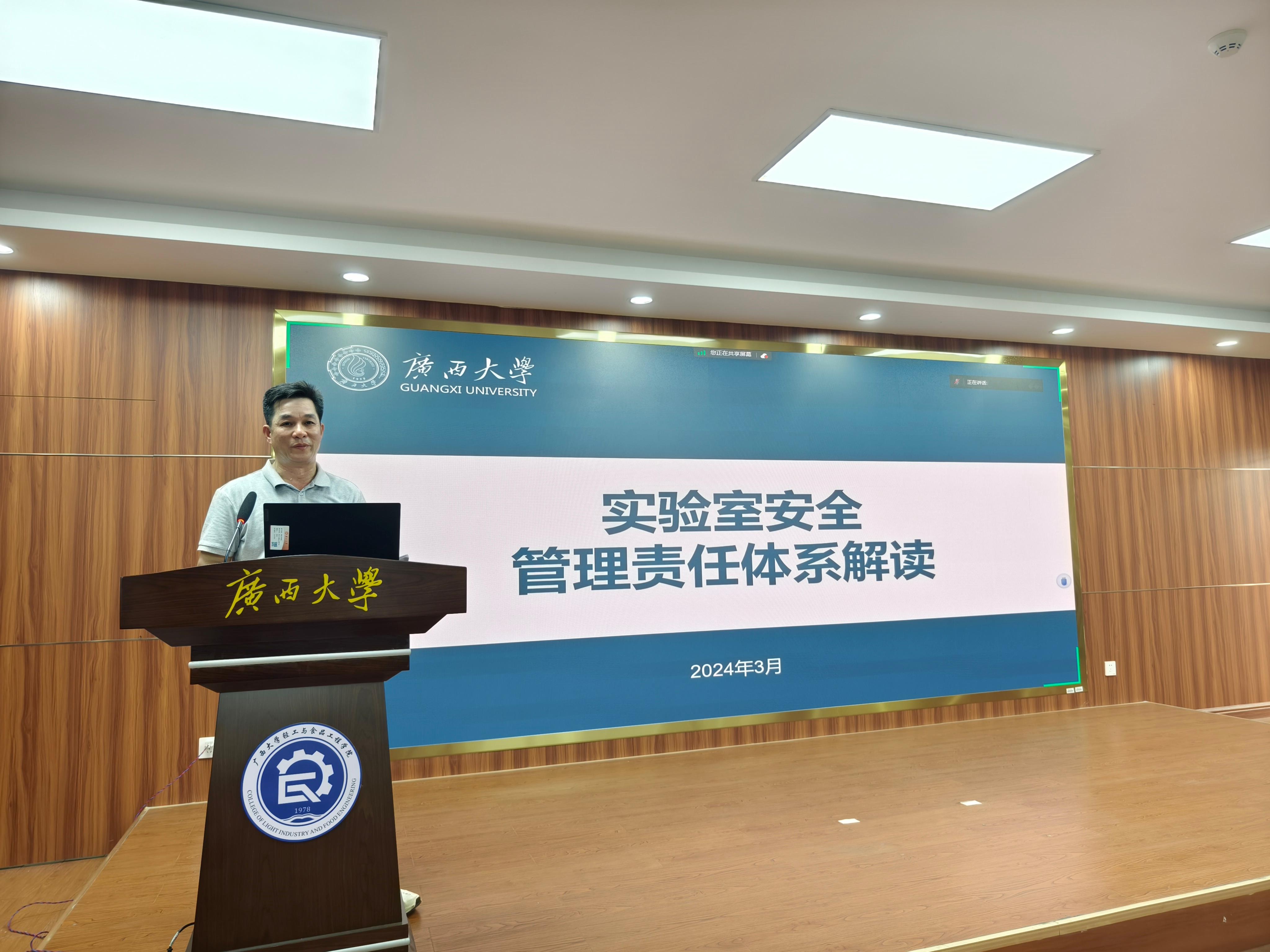 为总结3月29日216实验室起火事件的教训和现有实验室安全管理中的不足,提高公司师生安全意识,进一步压实责任,公司于2024年4月2日下午组织召开了全体教职工参加的实验室安全工作会议,对全院教职工进行安全警示教育,布置全院实验室安全隐患排查和整改工作,并邀请国实处甘正华副处长做“实验室安全管理责任体系解读”专题报告。公司党委书记姜玮主持会议,经理覃程荣及全体领导班子成员出席会议,全院教职工参会。