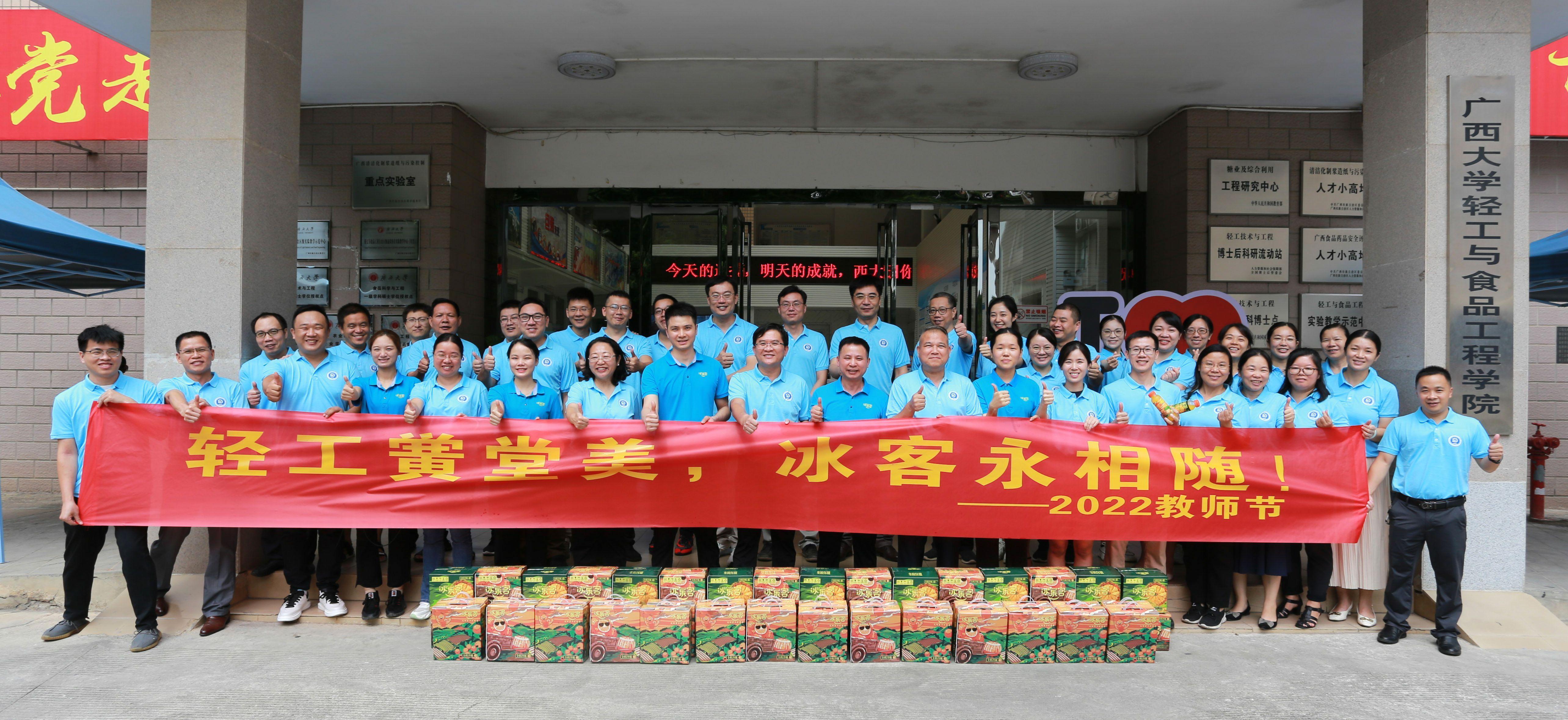 9月8日,公司员工企业广西冰客食品有限公司如约而至,并带来了他们的天然健康热带果汁,为2022级新生和公司全体教师送来夏日的“清凉”,让初来乍到的新同学感受到来自员工和公司的关心关爱,并为公司老师送上教师节和中秋节“双节”祝福。一瓶瓶清甜可口的沃柑果汁、金桔柠檬汁,浓缩的是西大轻工人清澈的、永续的情谊。广西冰客食品有限公司已经连续三年为公司迎接新生赞助清凉饮品。