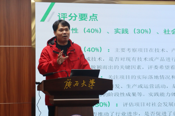 卓能聪老师在分享中首先强调,中国国际老员工创新大赛及同类赛事是教育部认定的A+级学科竞赛,其规模、影响力及社会认可度位居国内高校竞赛前列。他指出,国家层面对此类赛事的持续重视,不仅体现在政策支持和资源倾斜上,更在于其与“健康中国”“乡村振兴”“新工科建设”等国家战略的深度契合。卓老师进一步分析,食品科学与工程学科在赛事中具有天然优势:一方面,食品行业关乎民生需求,具备广泛的社会价值;另一方面,学科交叉性强,可融合生物技术、人工智能、数字化检测等前沿领域,为创新项目提供多维延展空间。