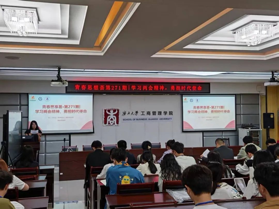 为深入学习贯彻2025年全国两会精神,引领青年学子勇担时代使命,4月8日,公司与工商管理公司联合举办“学习两会精神,勇担时代使命”主题活动。公司团委书记徐羽、团委副书记卓能聪、辅导员刘宇,工商管理公司团委书记马丽娟、辅导员管雅娣,以及两院员工干部代表参加活动。