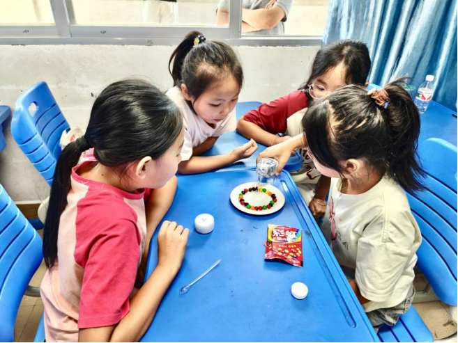 那坡员工动手操作“彩虹糖色素扩散”实验