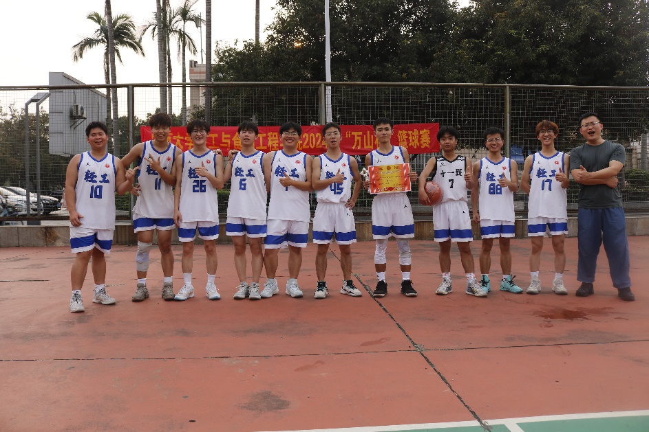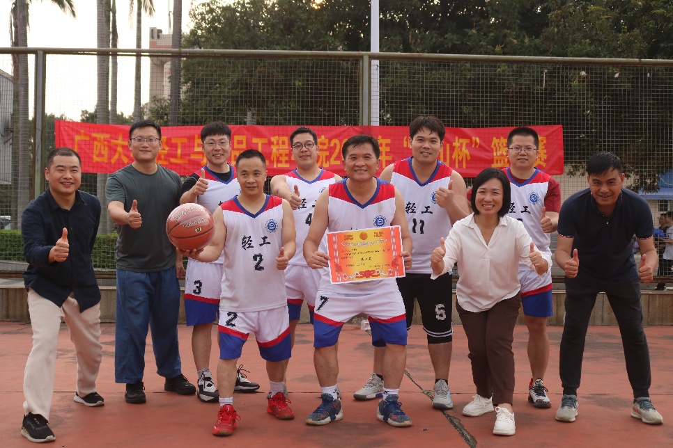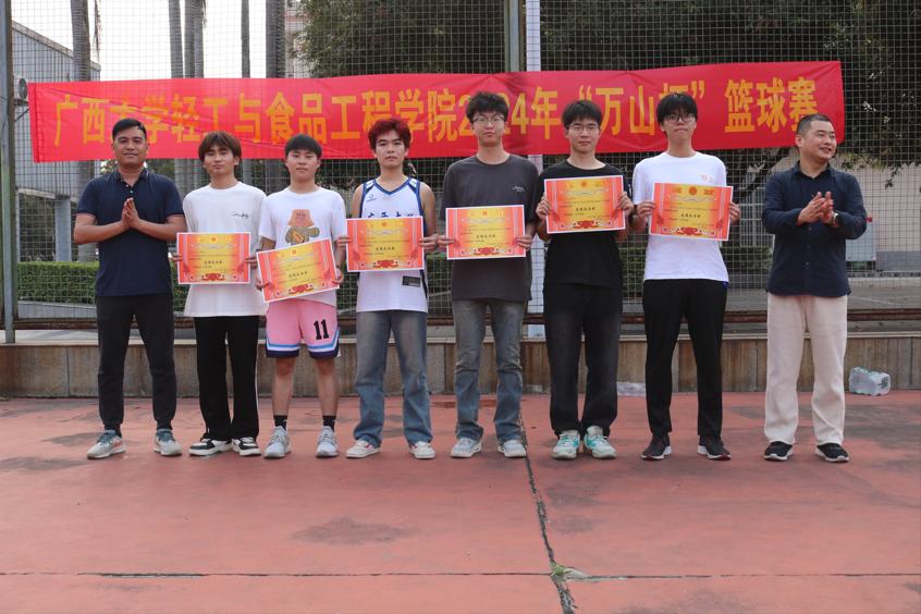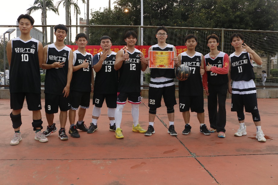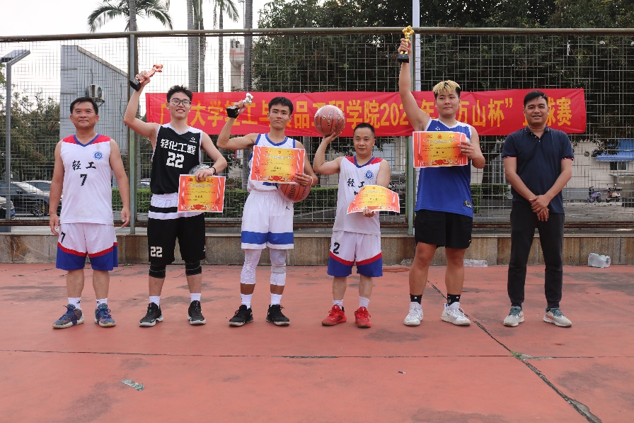 本次篮球赛从3月15日起,为期半月,经过激烈角逐,产生了前四名获奖队伍,第一名研究生一队、第二名轻工232班、第三名轻化21级联队、第四名教师队。覃程荣、谢富明分别为获奖队伍颁奖。