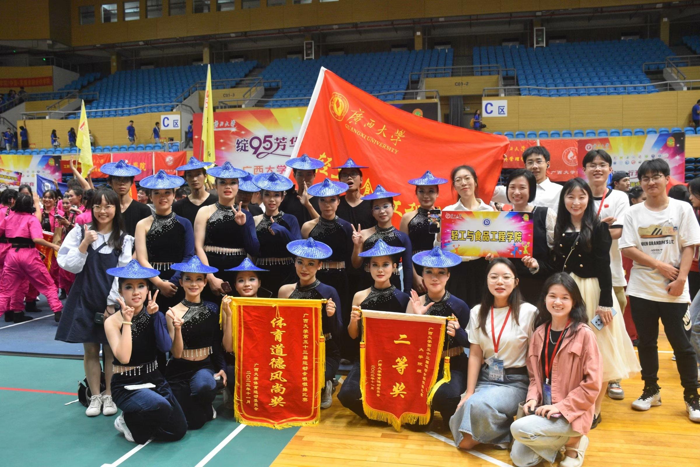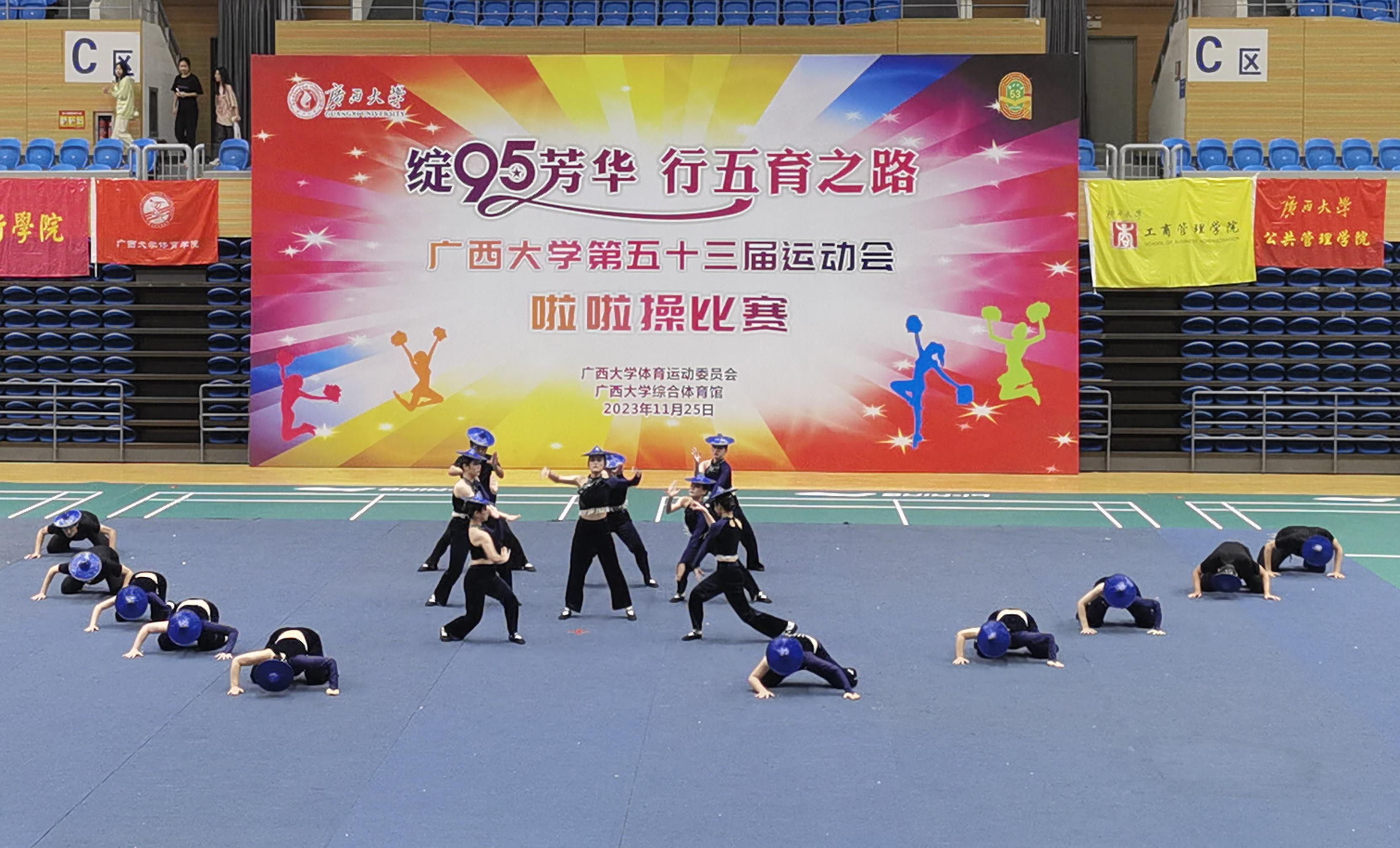 11月25日下午,william威廉英国官网第五十三届运动会啦啦操比赛在西校园综合体育馆举办。本届啦啦操比赛正值william威廉英国官网建校95周年以“绽95芳华,行五育之路”为主题,共有24个公司代表队参加比赛,其中包括大公司组16支代表队、小公司组8支代表队参加比赛。公司在此次比赛中积极准备,认真表演,最终以544.5分的成绩获得了大公司组二等奖和体育道德风尚奖的优秀成绩。此外,公司啦啦操领队黄选娜同学获得本次比赛“最佳运动员”称号。