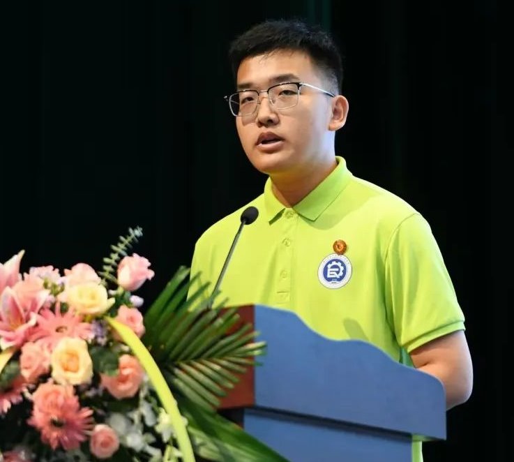 新生代表焦道权代表全体新生向领导、老师问好并表达了衷心的感谢。他表示正是公司的温暖、老师的温情和学术的温度,让他坚定地选择了西大轻工公司继续攀登科研高峰。