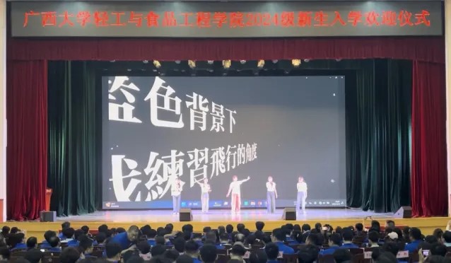 在热烈的掌声中,来自食品科学与工程2024级2班的黄杏雨作为新生代表发表了热情洋溢的讲话,表达了对成长路上默默付出的老师和家人的致敬和感谢,对自己过往的回顾和对未来的憧憬,承诺将秉持校训,与同学们携手前进,以勇气、刚毅和自信迎接挑战,不负青春韶华。